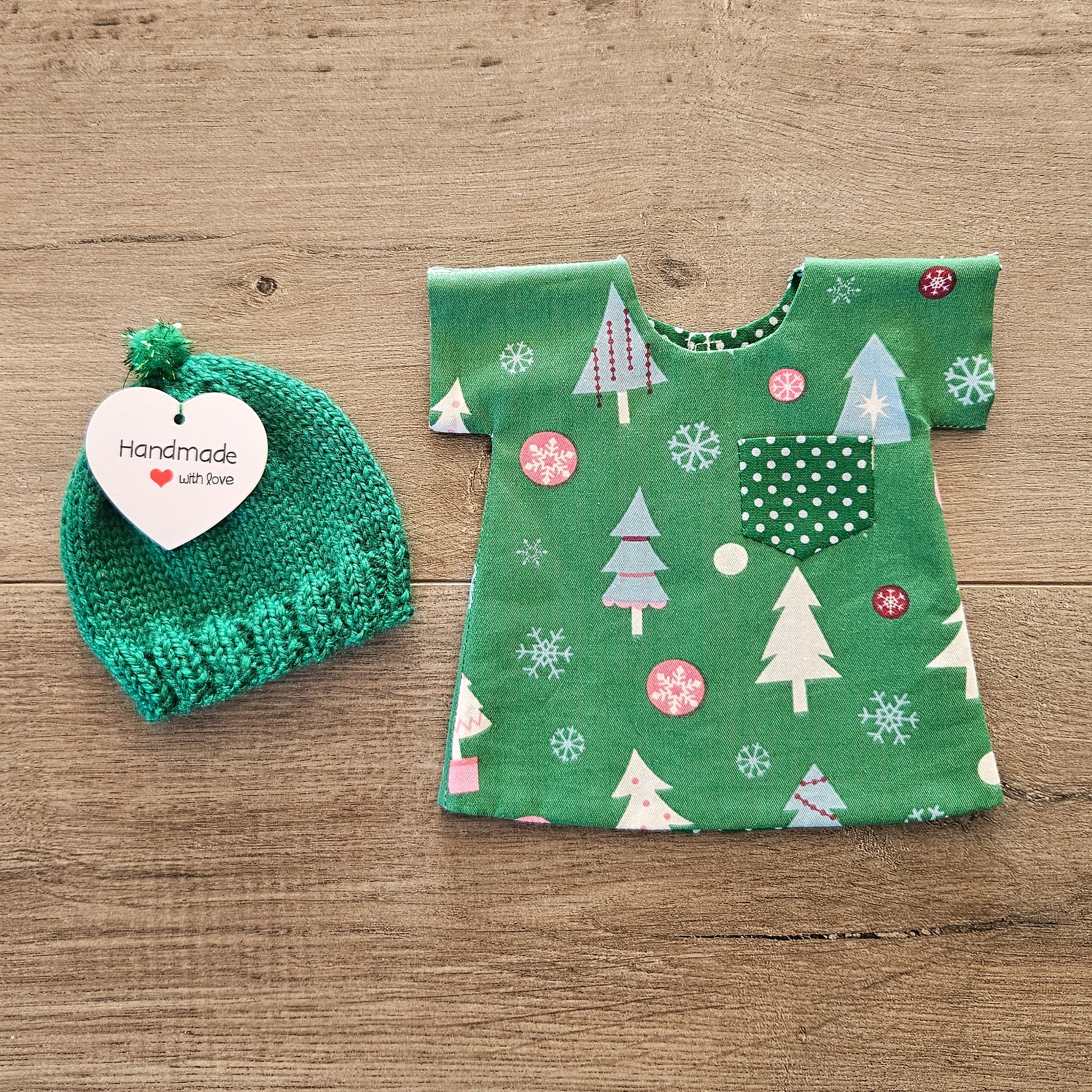 Handmade Premmie "Christmas" Gown & Beanie - 1.2kg 'Boy'