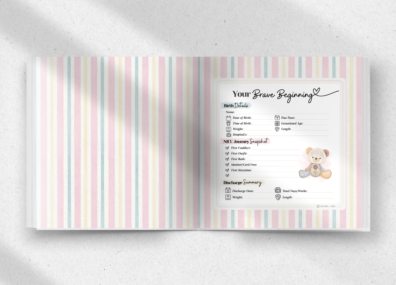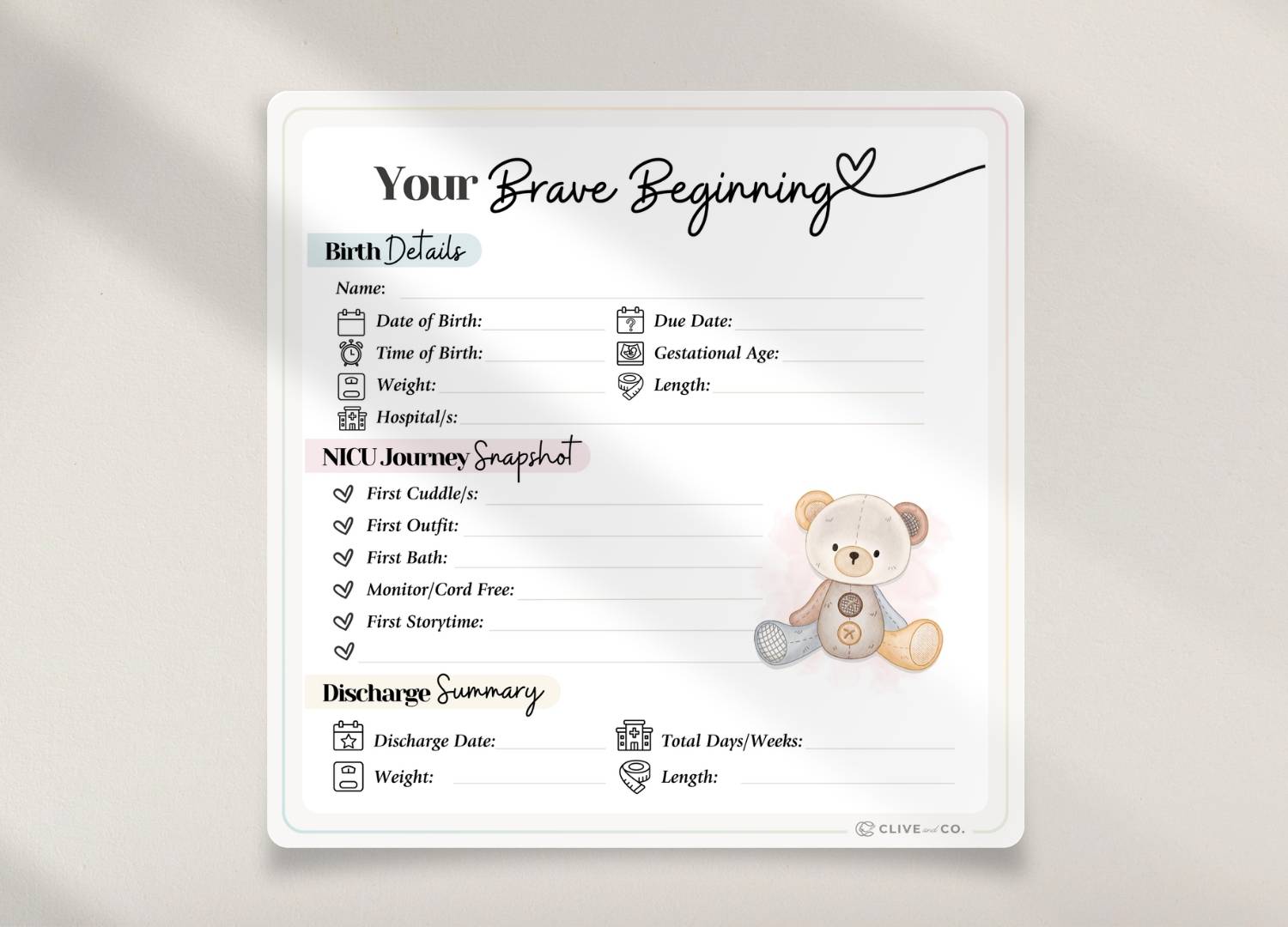 This NICU Birth Details Sticker transforms your Brave Beginnings book into a personalised, meaningful keepsake, capturing precious milestones, celebrating bravery and preserving memories your family will treasure forever.